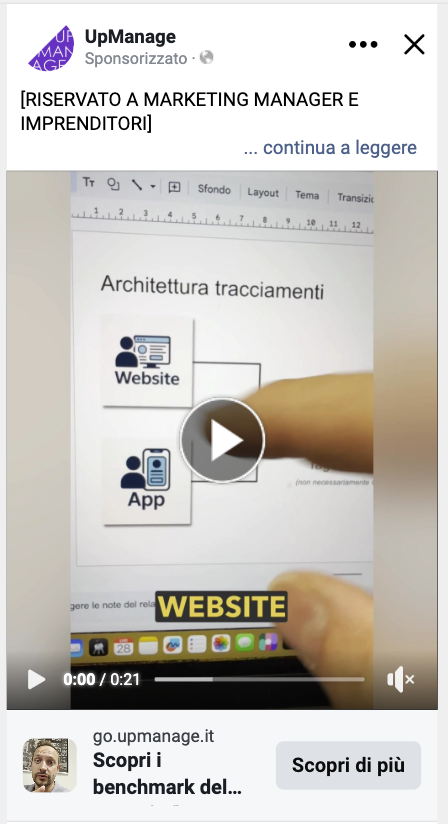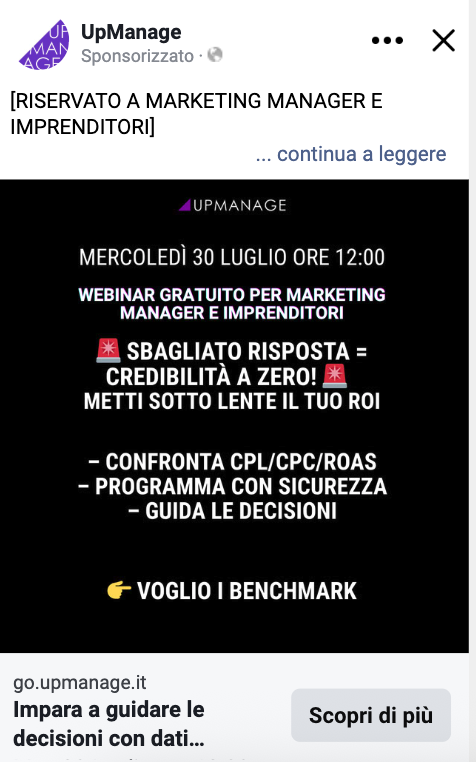 Quindi nel caso dei webinar consigliamo di partire con almeno 21 giorni di anticipo oppure limitare il numero di creatività e indirizzare il target.