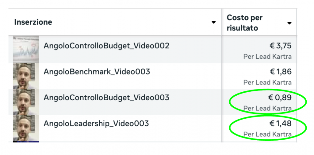 Siamo riusciti ad arrivare a un CPL minimo di 0,89€ (partendo da 25€ a lead).