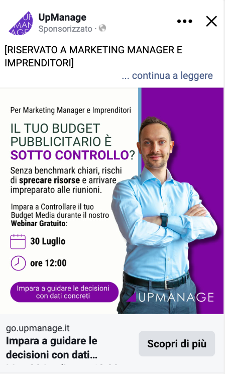 Questo è un caso studio particolare perché non parliamo di altre aziende ma delle nostre stesse campagne per un webinar UpManage. Vogliamo dimostrare, con questo articolo, come i due elementi fondamentali per ottenere risultati nelle campagne pubblicitarie online siano 3 T: